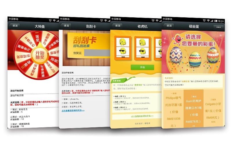 刮刮卡、大转盘、一战到底、老虎机、砸金蛋……互动一下,引爆微信公众账号人气。